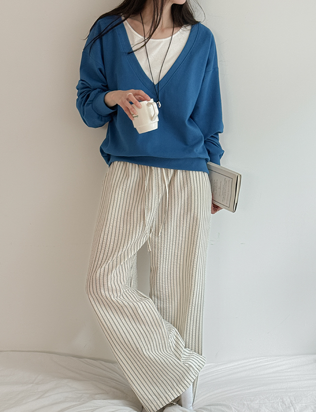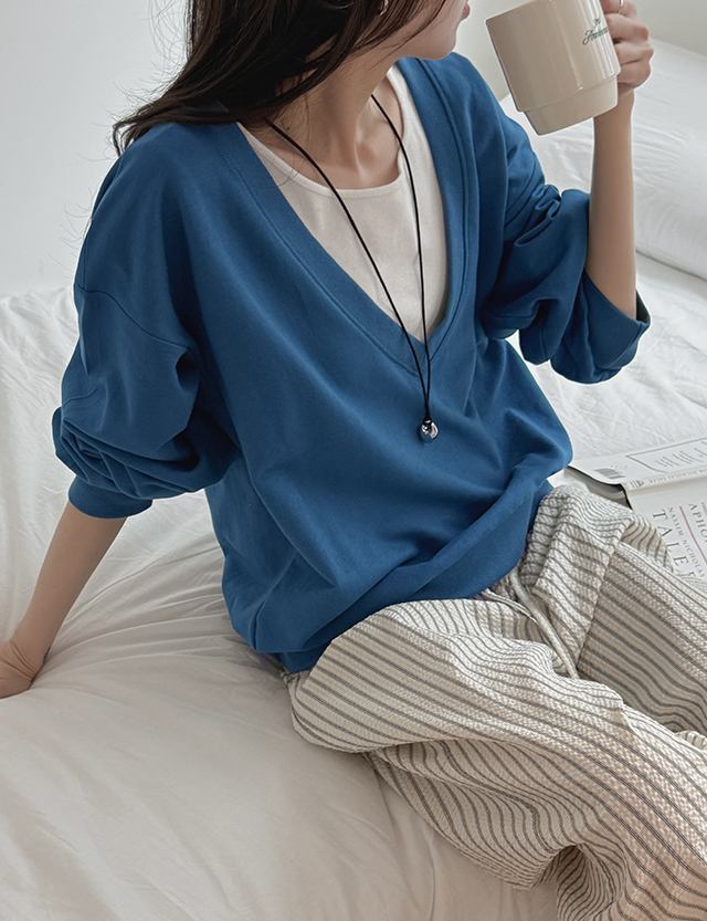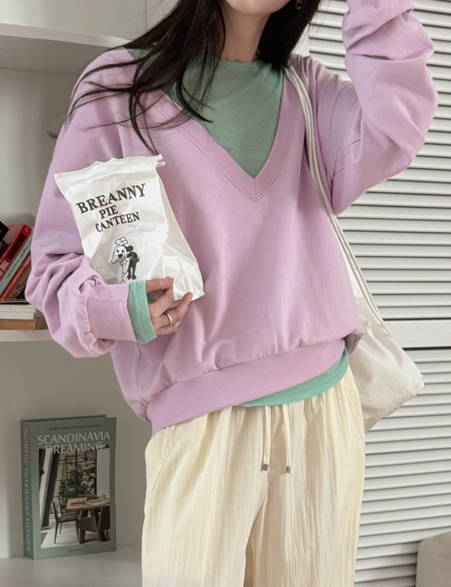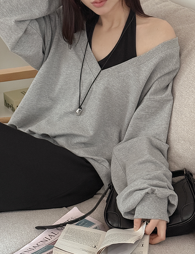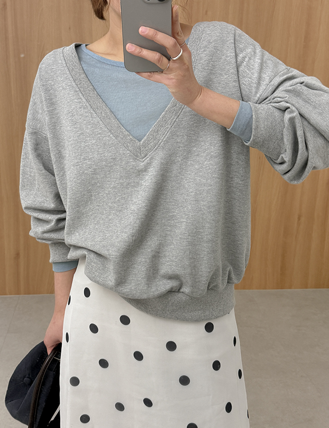 알포라 ディップ Vネック ルーズフィット スウェット 86719