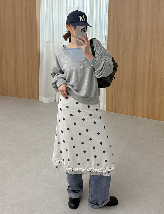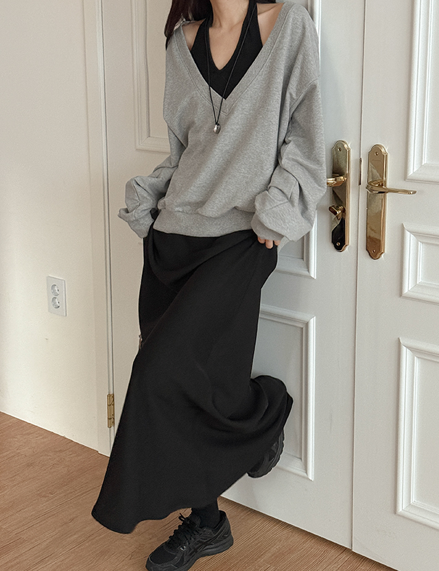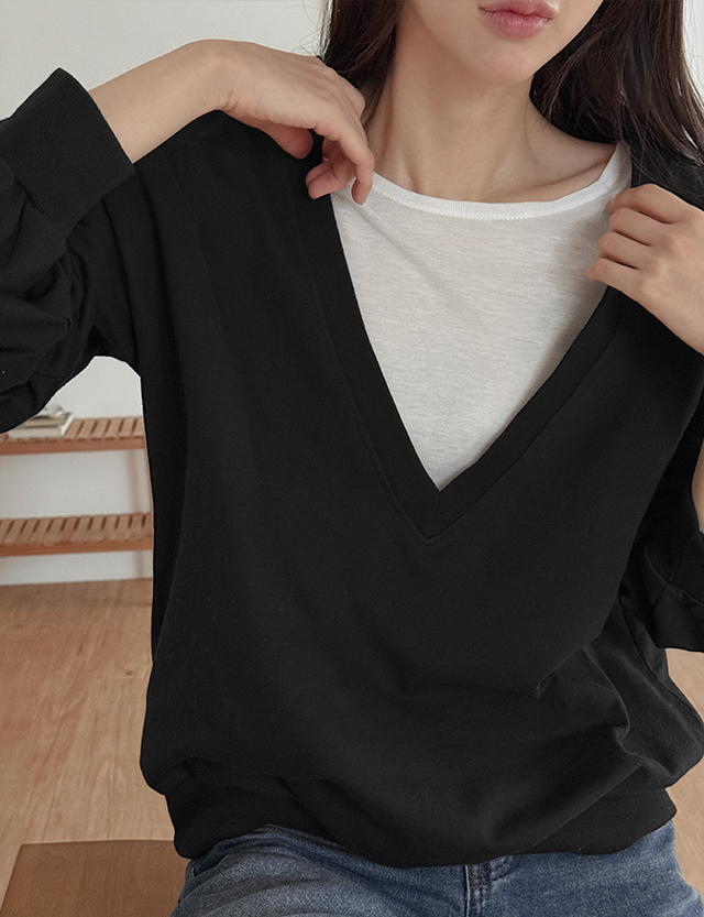 알포라 ディップ Vネック ルーズフィット スウェット 86719