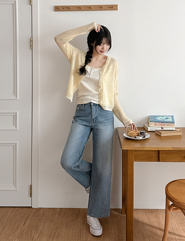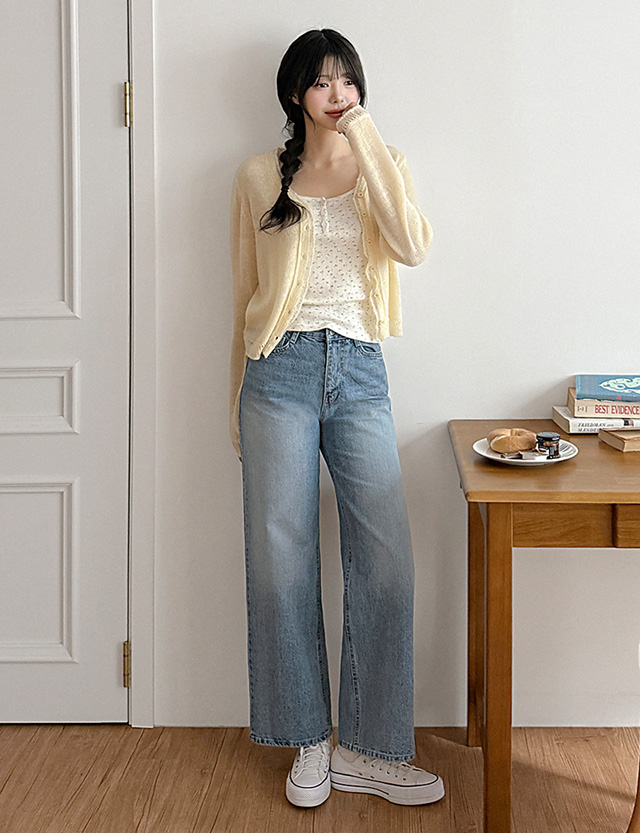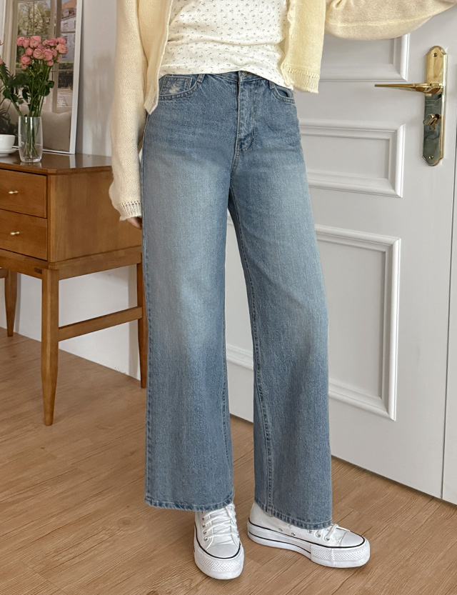 체프 러프 컷 スリット 세미와이드 デニム パンツ 86613