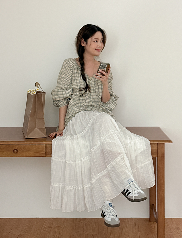 라슈카 ティアード ゴム ロング スカート 86563