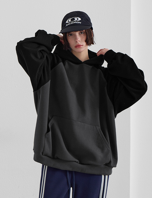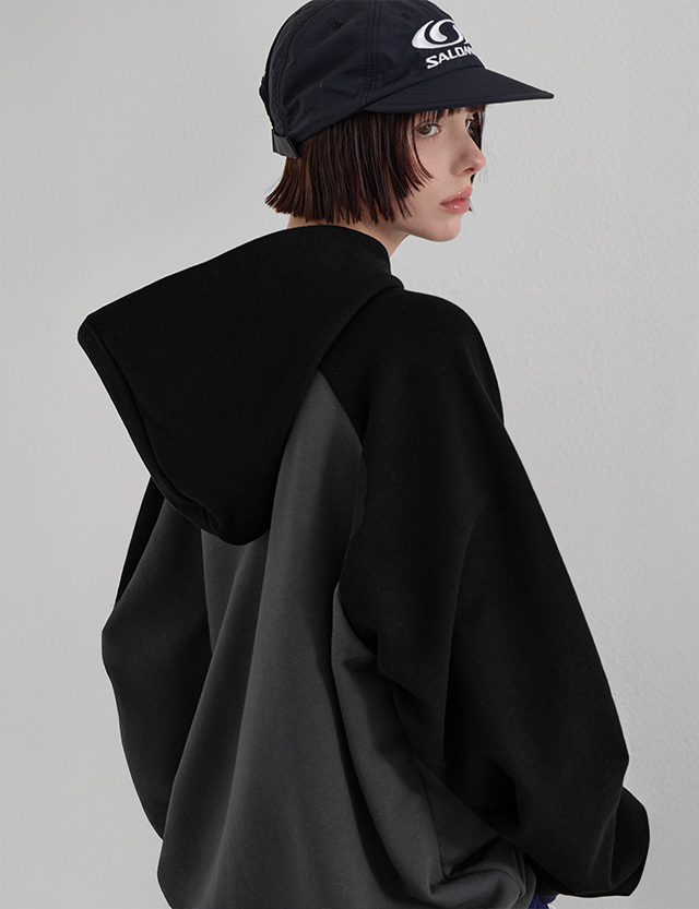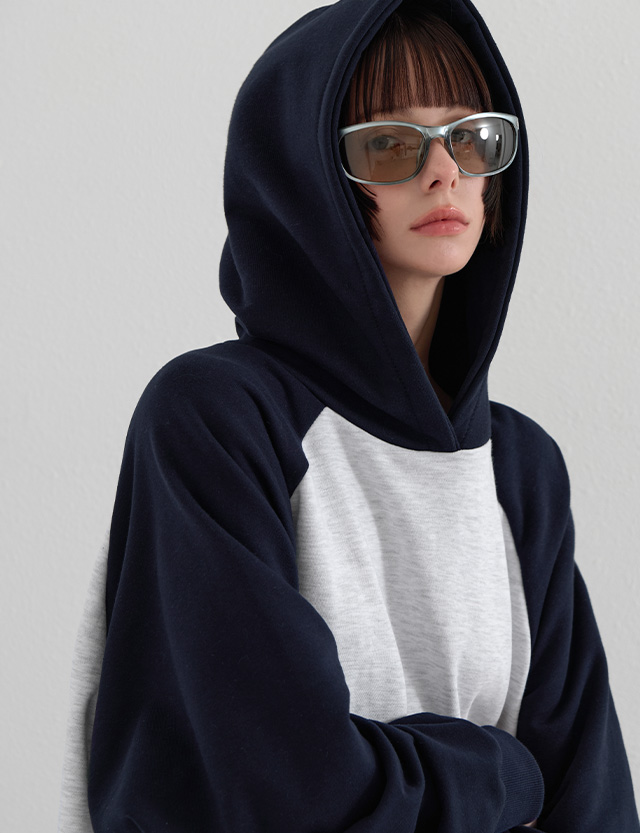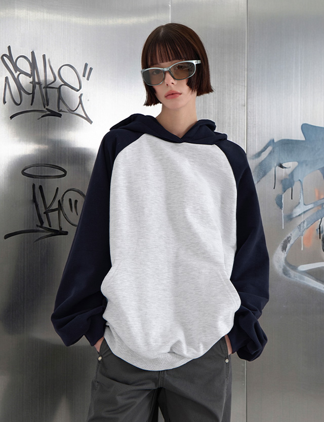 블로코 ルーズフィット ラグラン 配色 フード ティーシャツ 86621