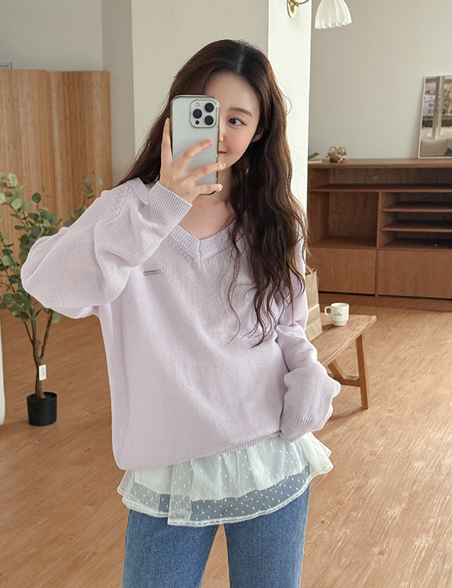 미니로고 브이컷 ラグラン ニット 86748