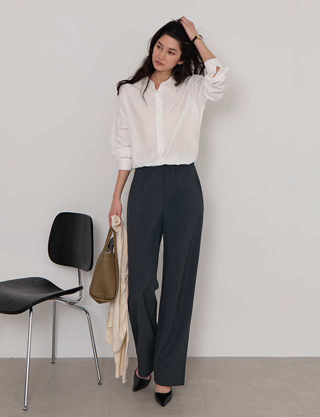 [特価30%][40까지] 링클프리 항상 깔끔하게 세미와이드 ゴム スラックス 86566