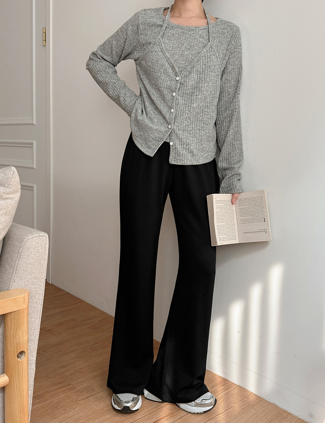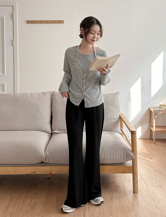 글레이드 ゴム ワイド ブーツカット パンツ 86738