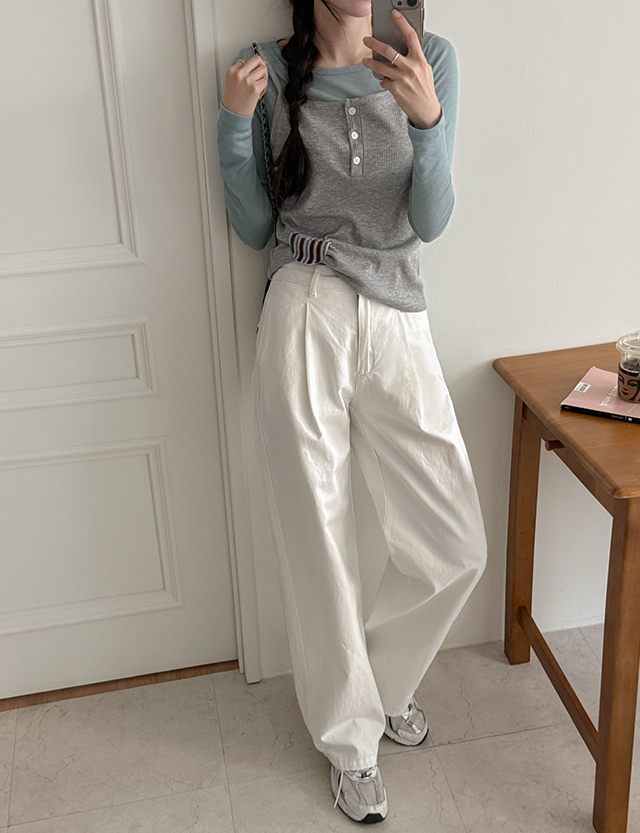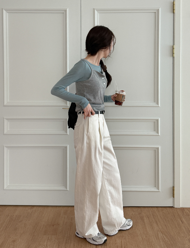 [2가지기장] 포레아 サイド 절개 コットン 세미 ワイド パンツ 86799