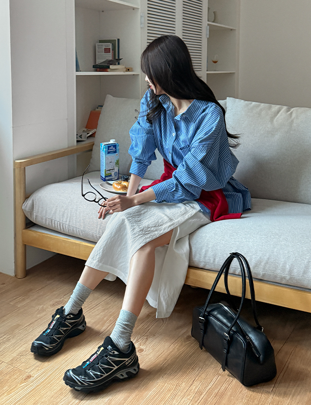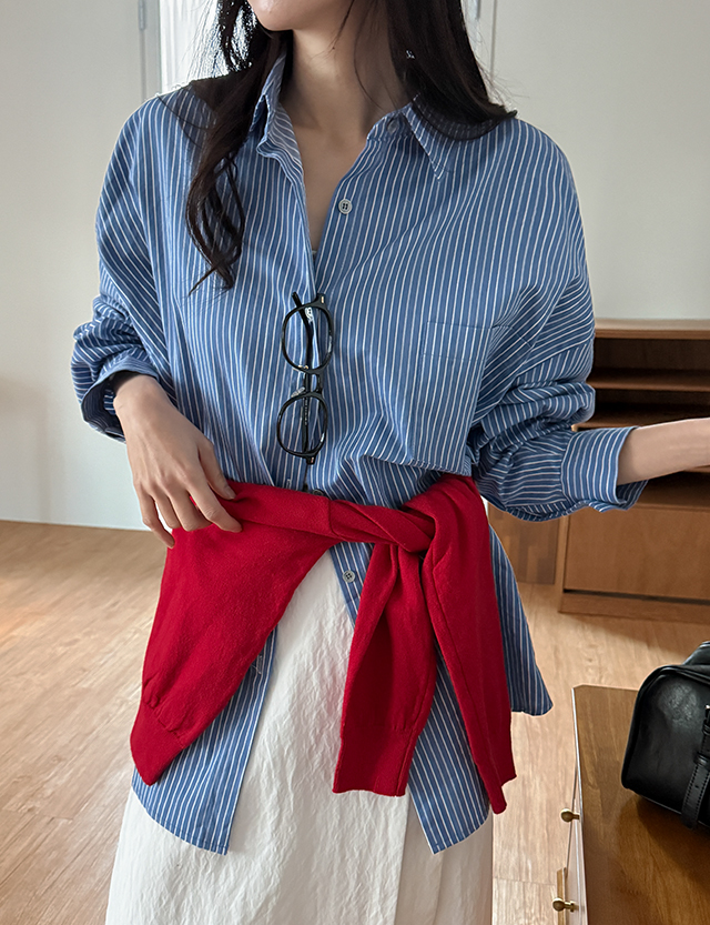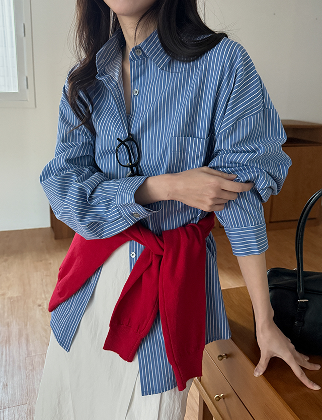 카미 ストライプ 레터링 ルーズフィット シャツ 86650
