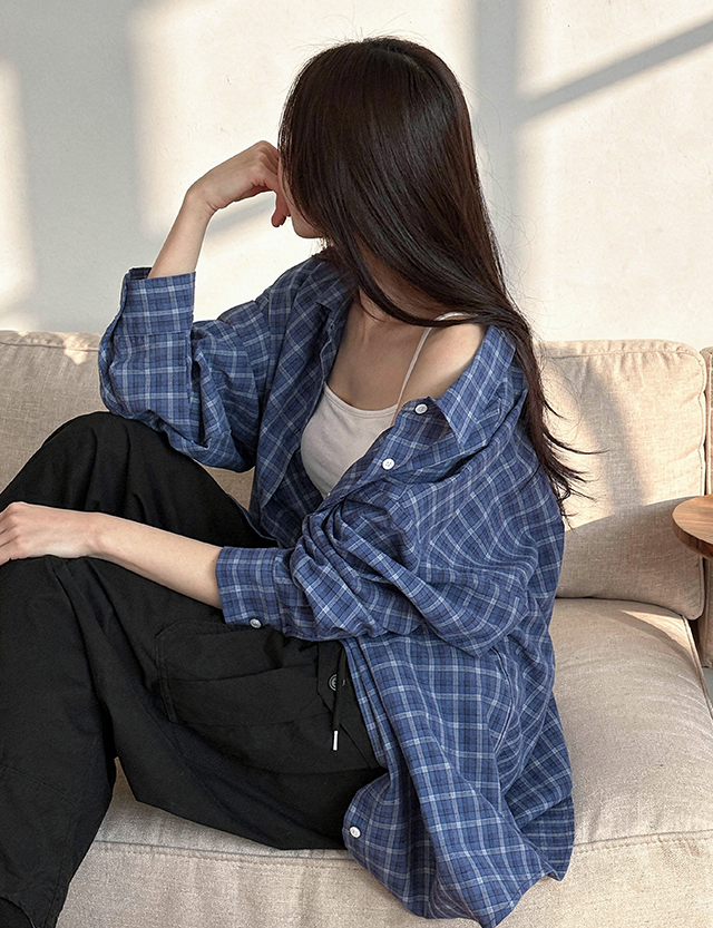 가볍게 걸치는 デイリー ルーズフィット チェック シャツ 86711