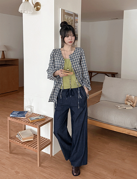 리투아 사선절개 ゴム ワイド パンツ 86908