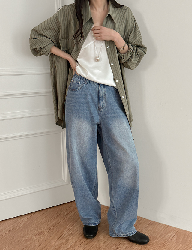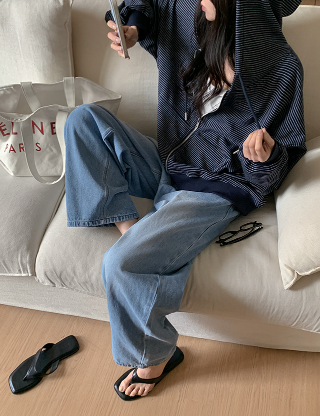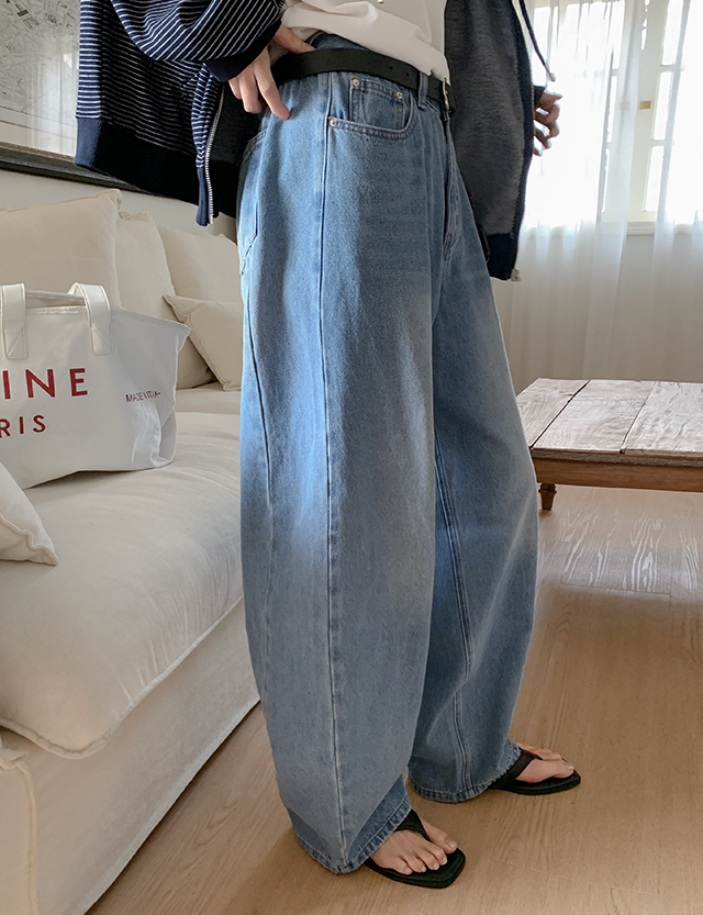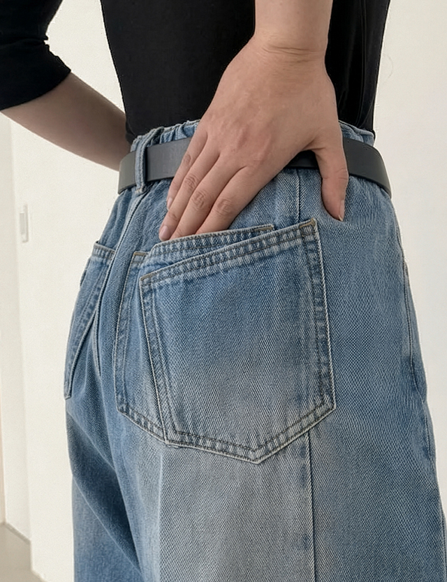 청량블루 세미 バルン 뒷밴딩 デニム パンツ 87057