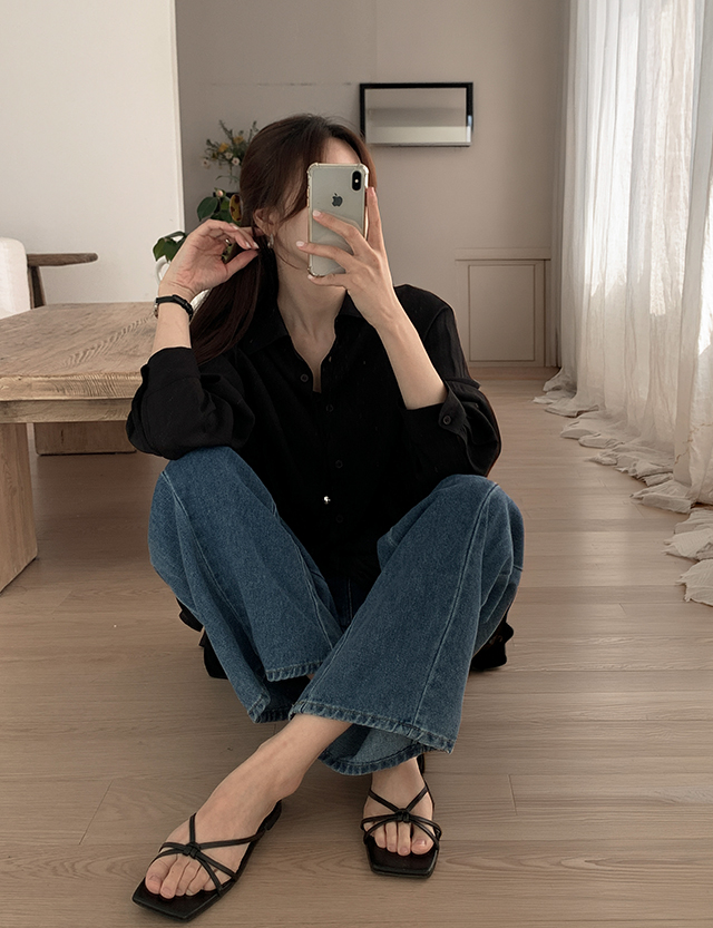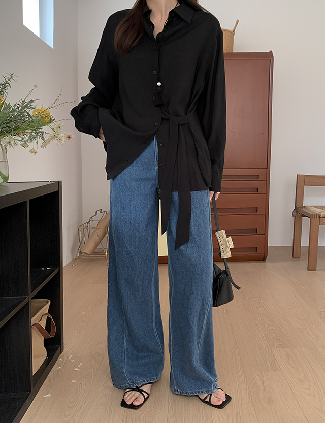 라인드 속밴딩 절개 ワイド デニム パンツ 87013