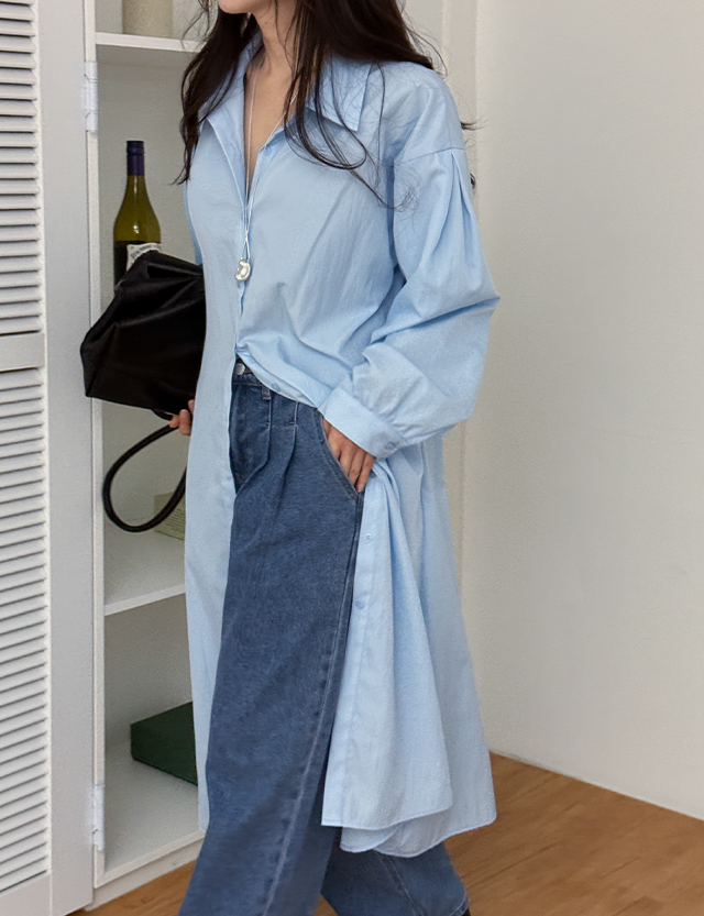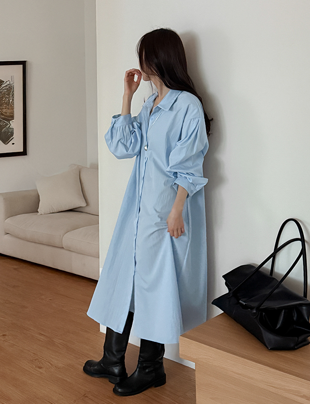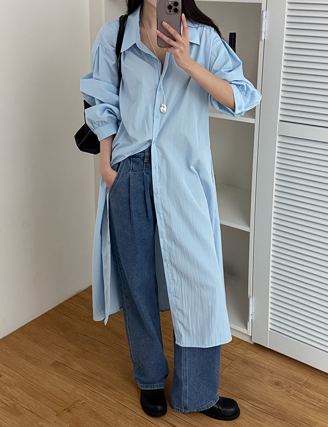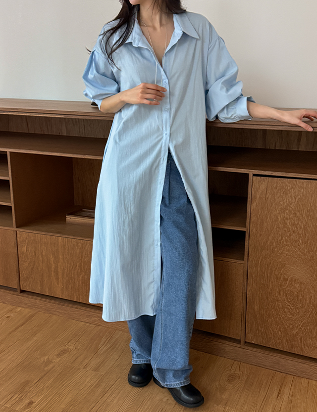 멋스럽게 ルーズフィット ロング シャツ ワンピース 86782