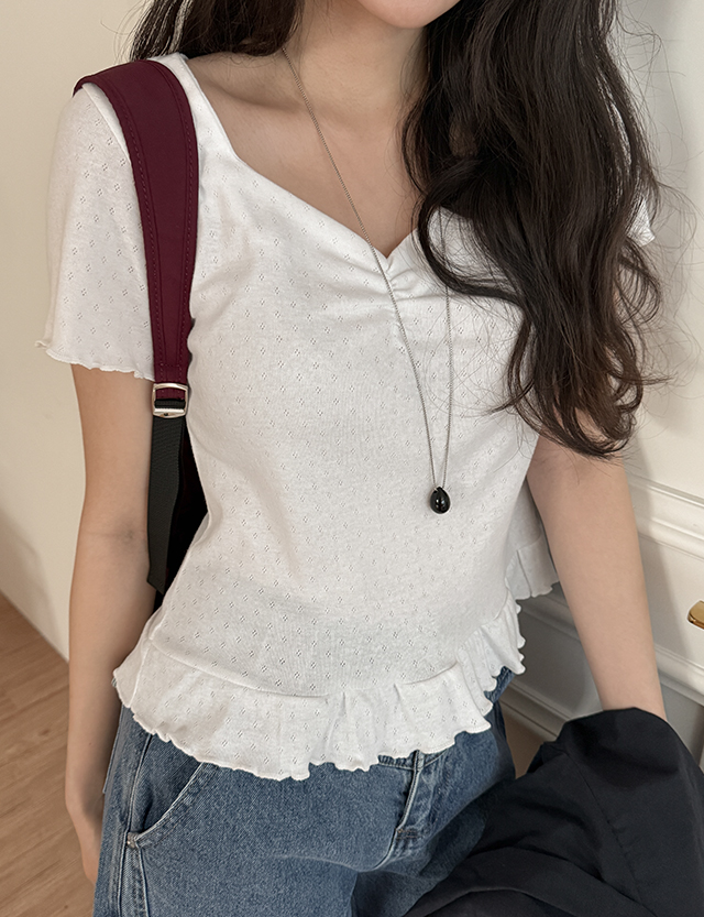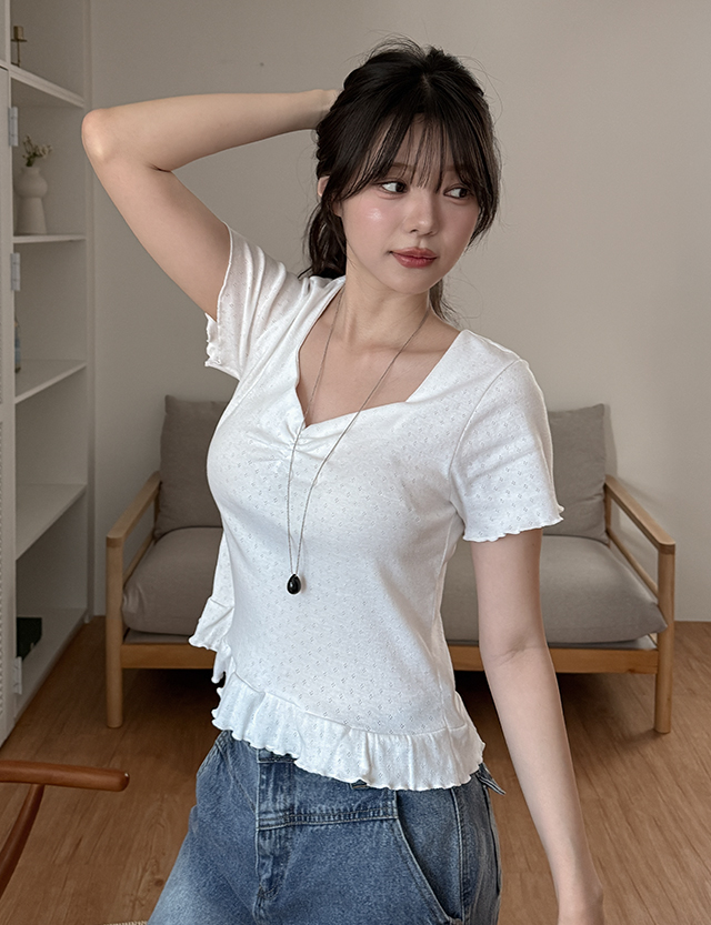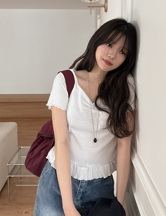 루베닌 パンチング フリル 하트넥 半袖T 87115