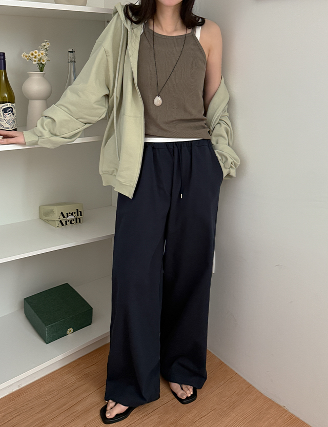채리카 ゴム バルン ワイド 2way 핀턱 パンツ 87073