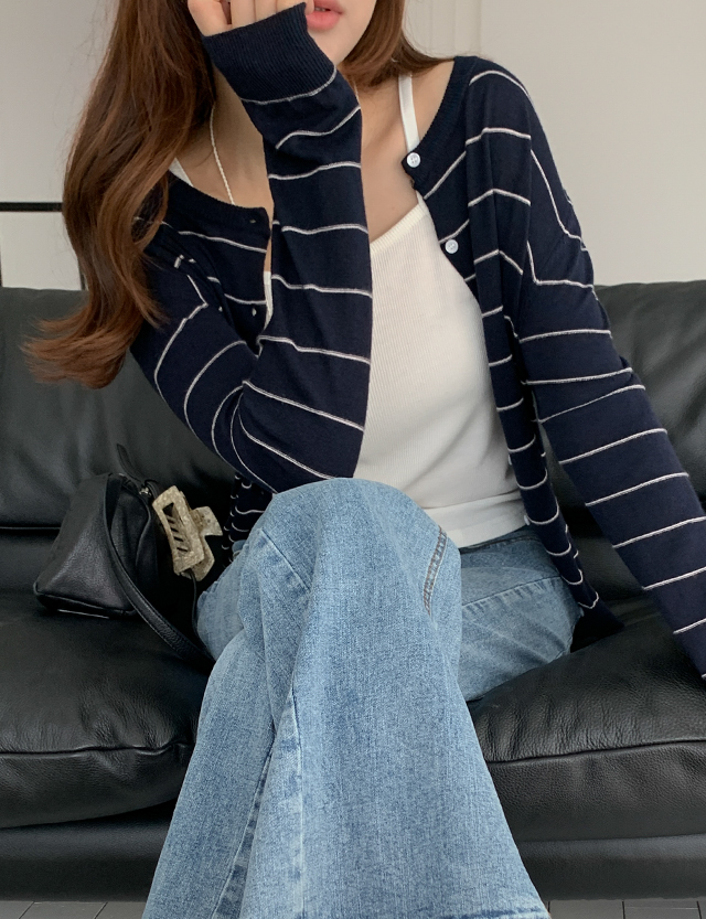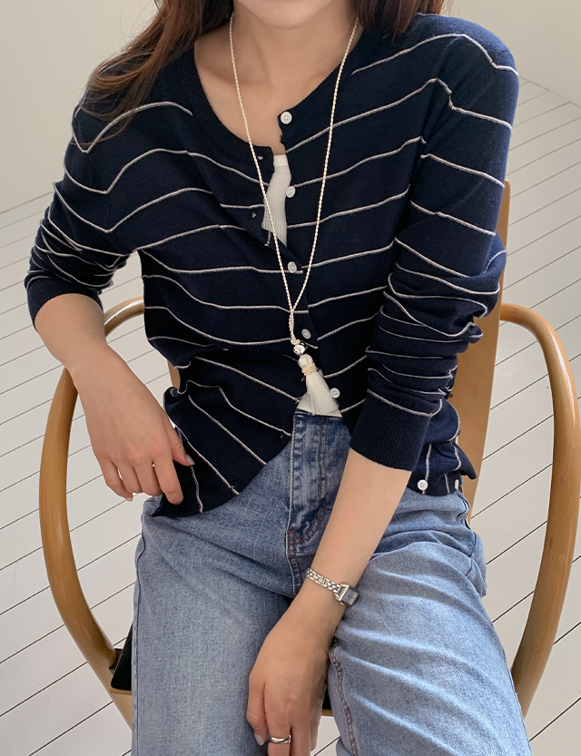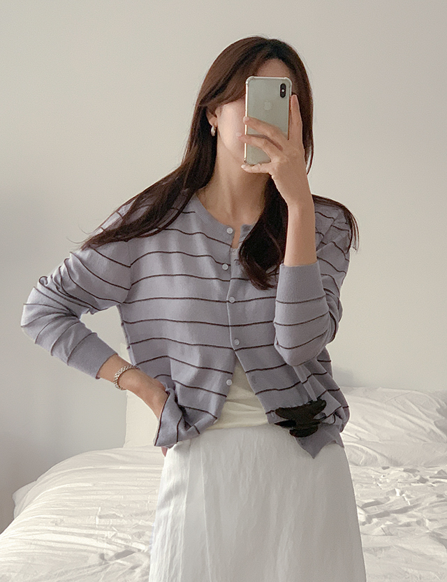 [09초이스] 옷장 속 デイリー ストライプ ラウンドネック カーディガン 86714