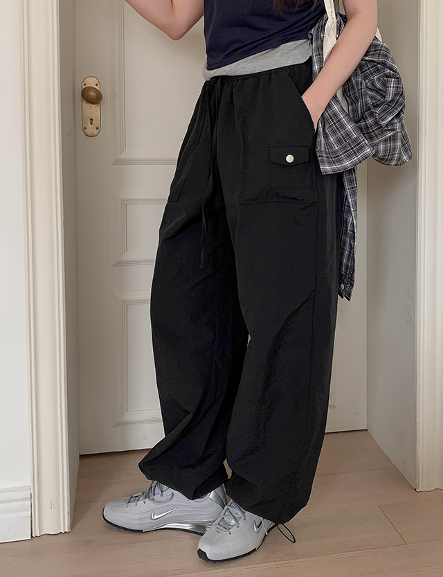 라크 유틸리티 ミニ 포켓 ワイド ゴム パンツ 87126