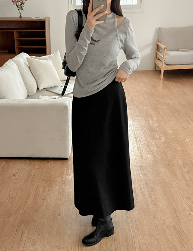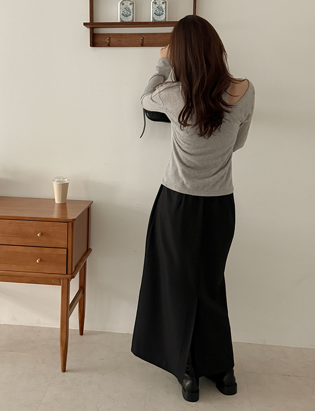 페어 뒷밴딩 Aライン 슬릿 ロング スカート 86821
