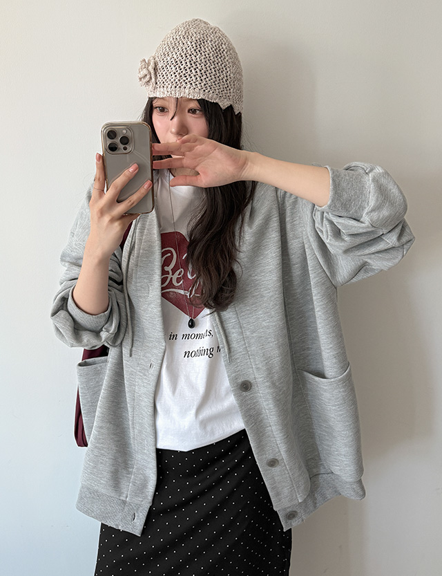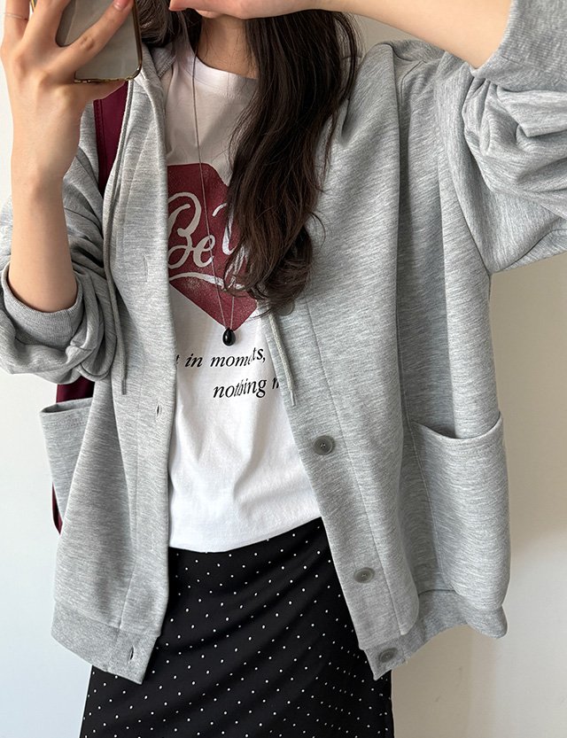 로네르 포켓 버튼 フード  カーディガン 87120