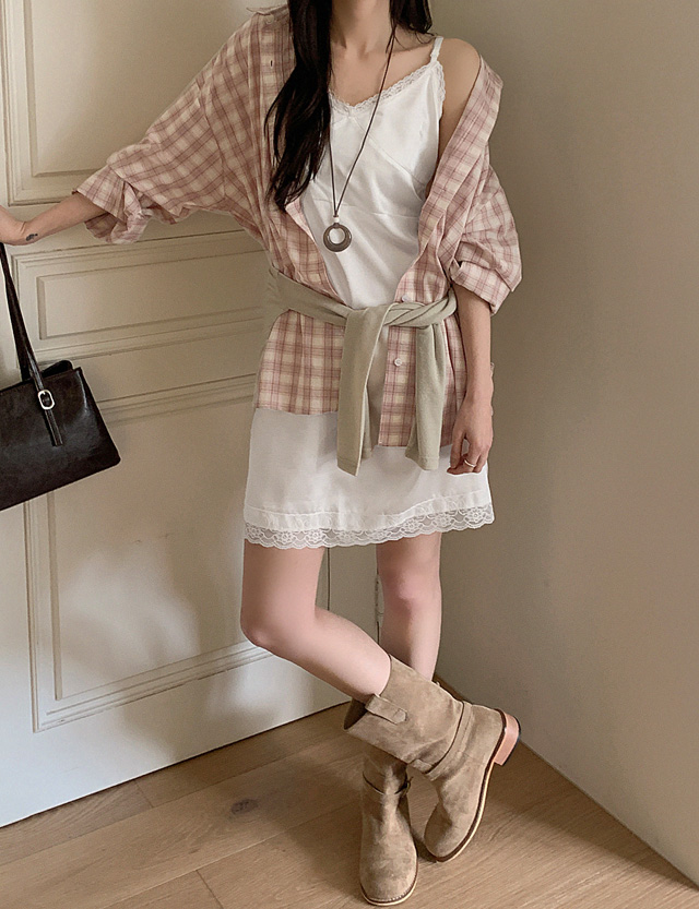 [끈조절가능][レイヤード치트키] 멜르 レイス スリーブレス レイヤード ワンピース 87168