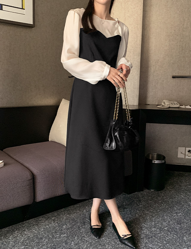 로레트 하트넥 レイヤード Aライン ロング ワンピース 87195