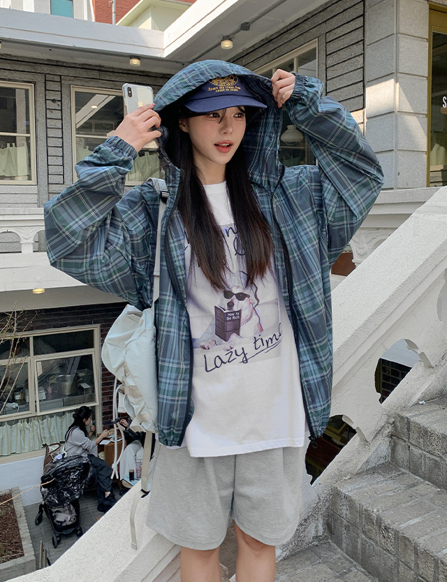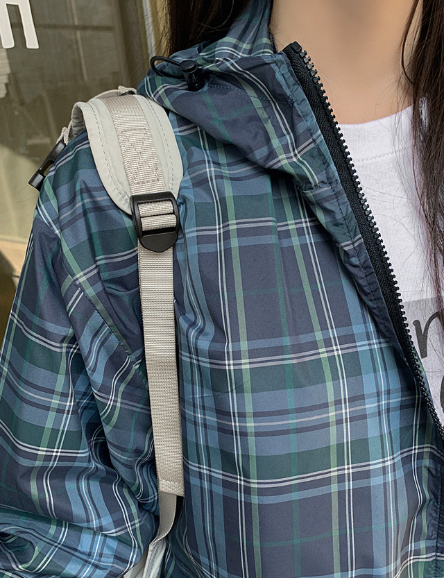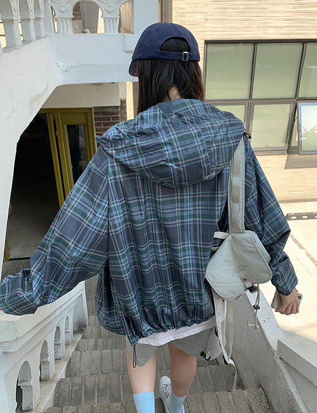 드쥬린 ルーズフィット チェック フード ジップアップ 87219