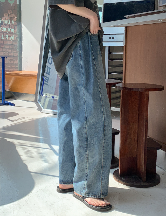 웬즈 サイド 핀턱 ワイド デニム パンツ 87155