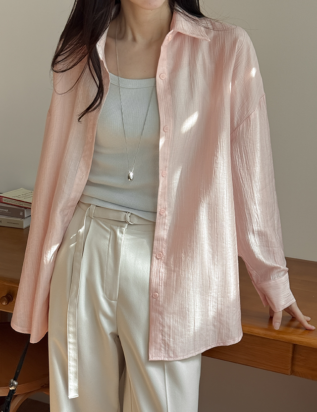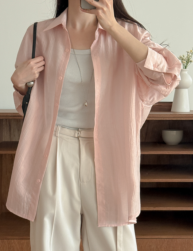 은은하게 글로시 ルーズフィット しわ シャツ 87312