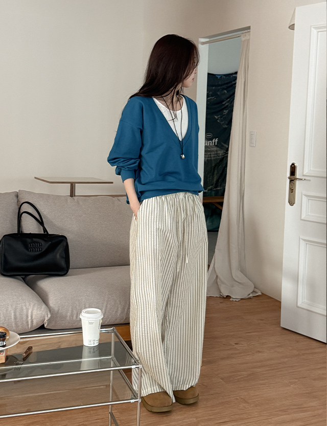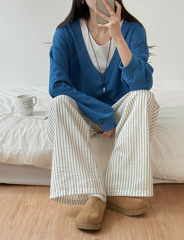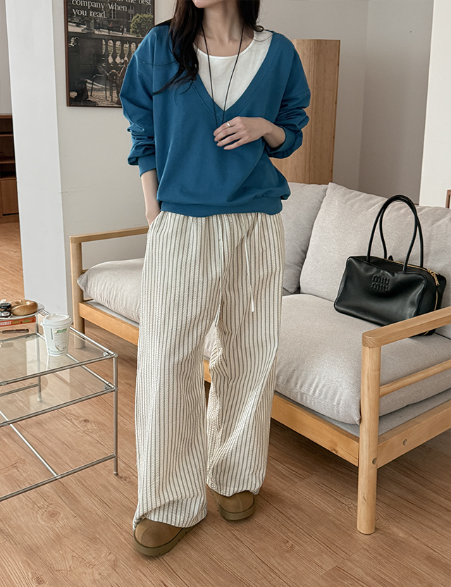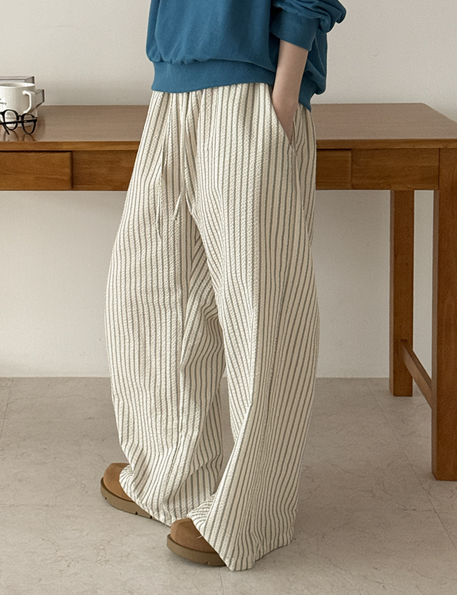 뮤젤 시어서커 ストライプ ゴム パンツ 87157