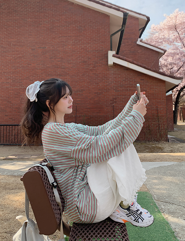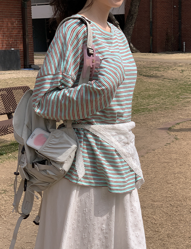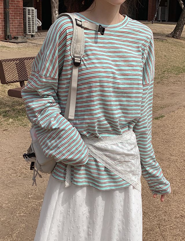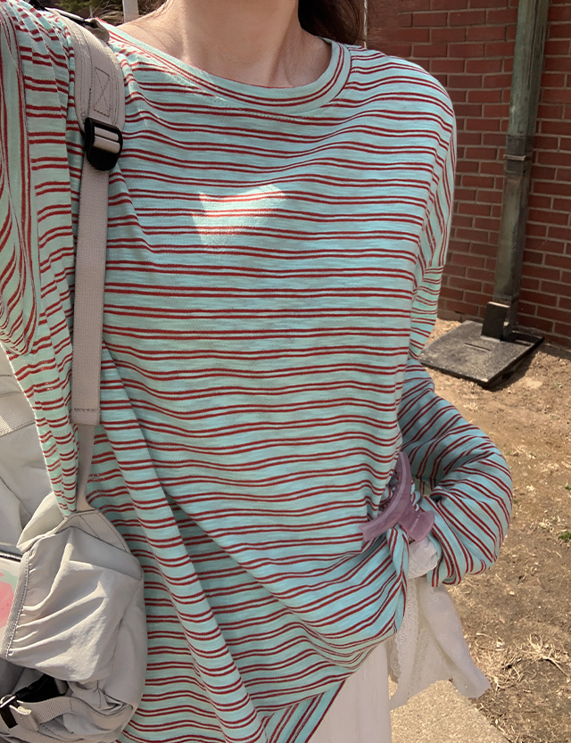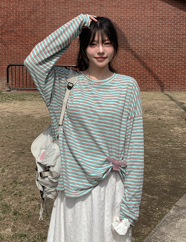 [살안타템] 스프링 ボーダー ルーズフィット ティーシャツ 87293