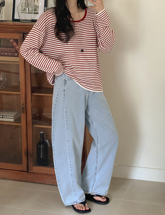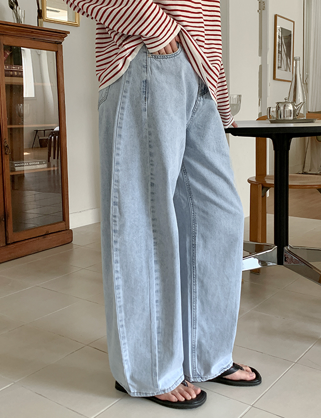 일리브 커브드 절개 ワイド デニム パンツ 87259