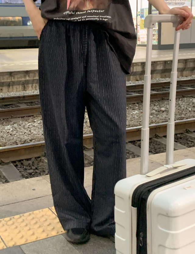 막입어도 멋스러운 ゴム ストライプ パンツ 87046