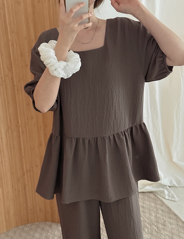 차르르 가볍게 ルーズフィット ブラウス&ワイド パンツ セットアップ 87322