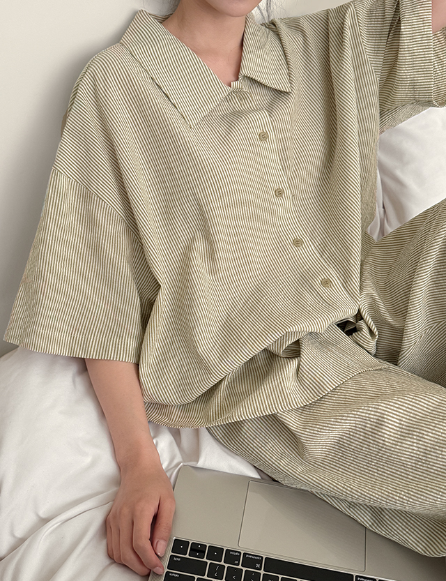 리베인 ストライプ 리얼루즈핏 パジャマ セットアップ 87391