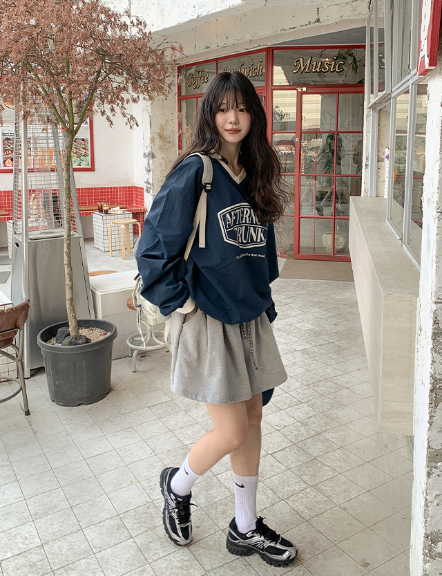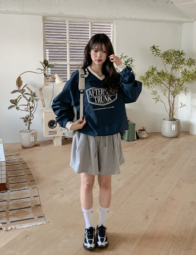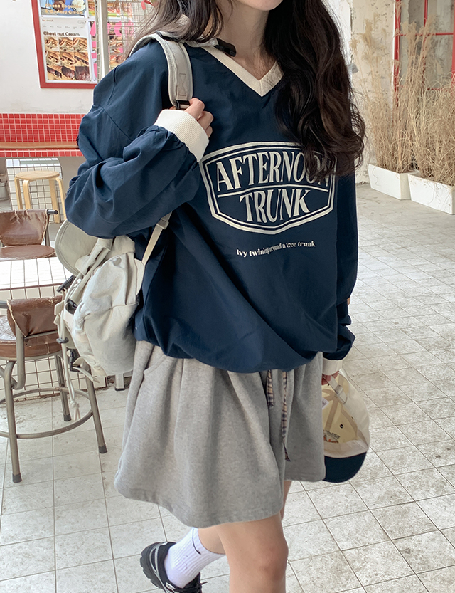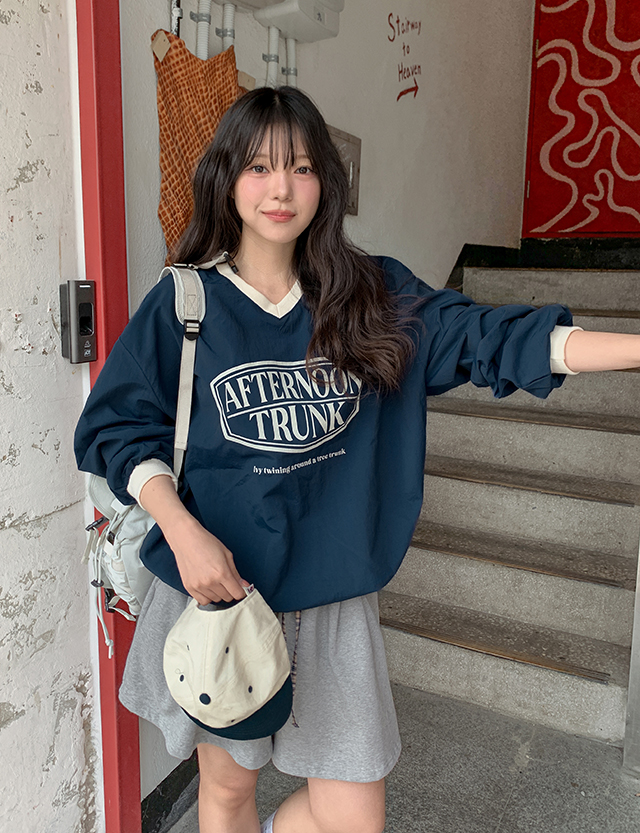 에어린 カラー 配色 나일론 Vネック ルーズフィット スウェット 87260