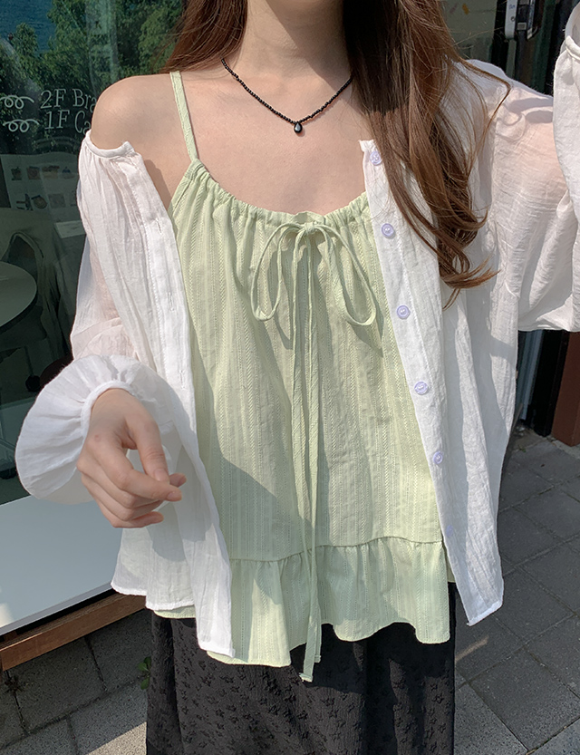 뮤즈넬 フリル リボン 袖なし ブラウス 87327