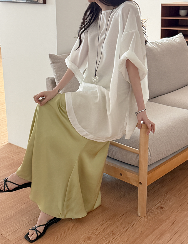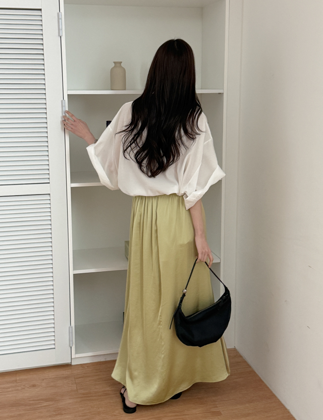 우아함의 끝판왕 ゴム サテン 맥시 ロング スカート 87311