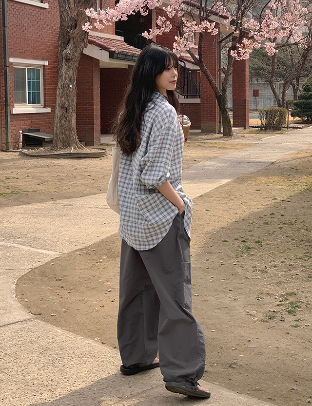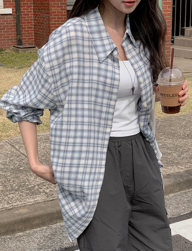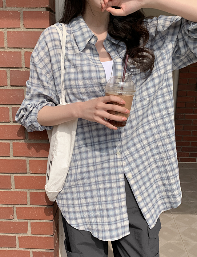 [살안타템] 고실고실 옷장필수로 챙겨입는 ルーズフィット チェック シャツ 87290