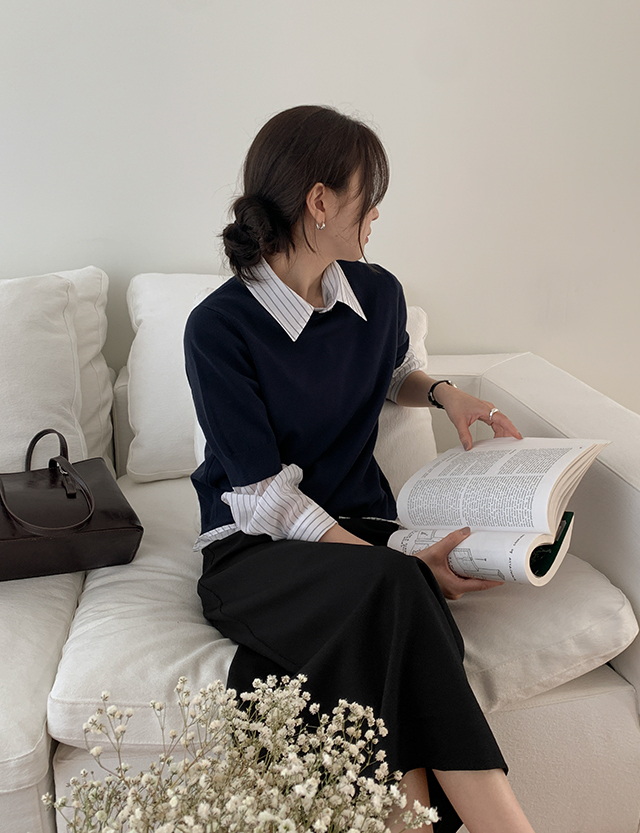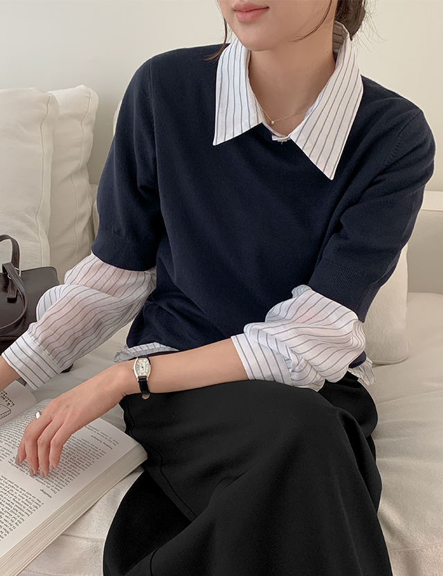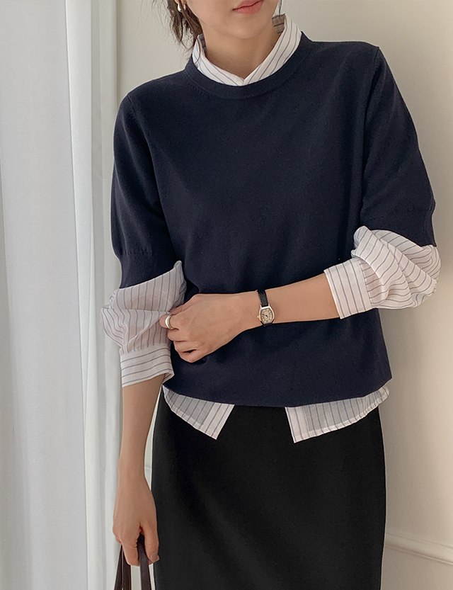 샤로트 ベーシック ラウンド 半袖 ニット 87180