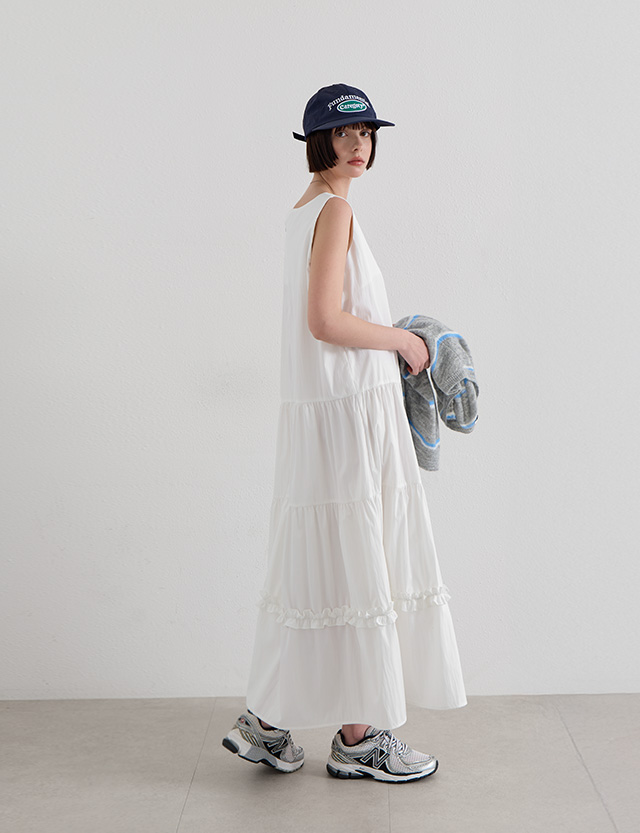 로에아 袖なし フリル フレア ロング ワンピース 86915