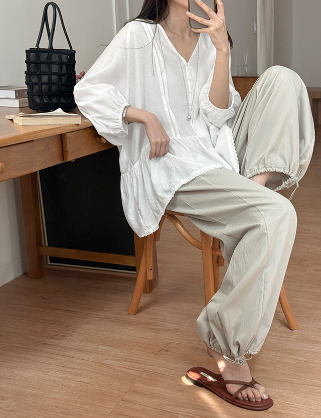안입은듯 가볍게 ゴム ワイド 2way パンツ 87344