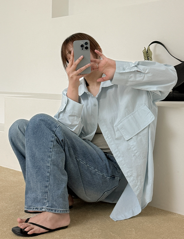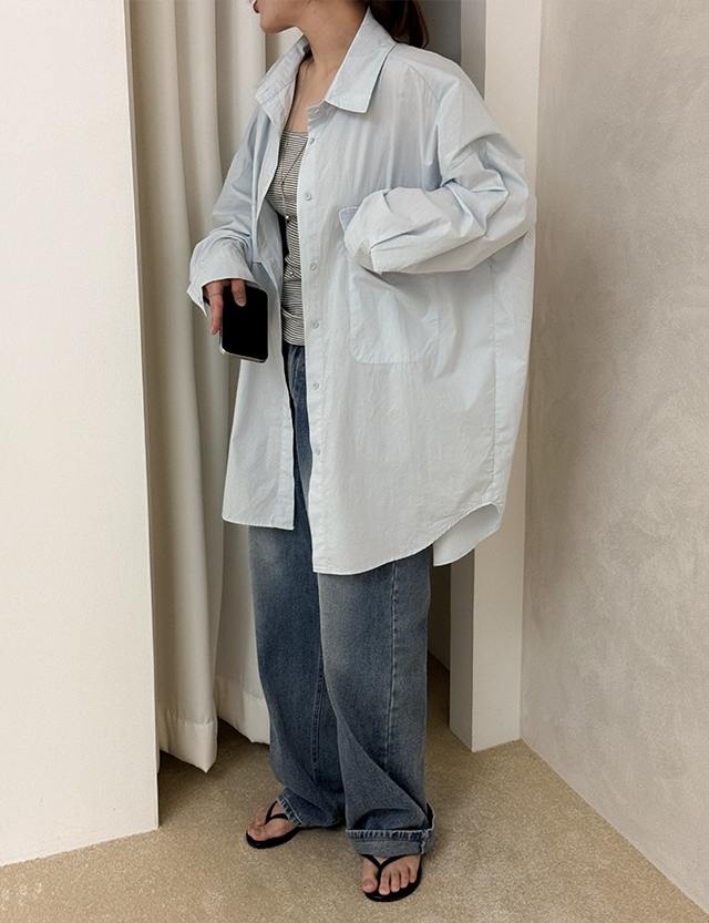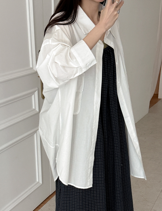 [09초이스] 여리하게 デイリー ルーズフィット コットン ロング シャツ 87486