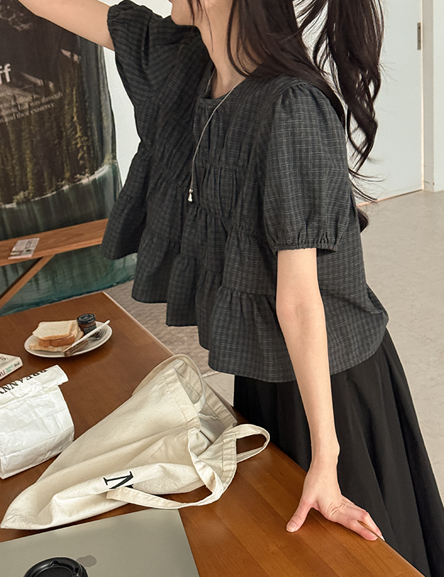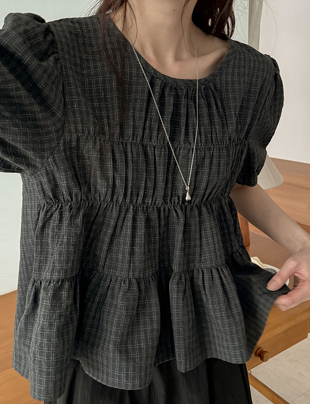 로우셀 チェック フレア ブラウス 87372