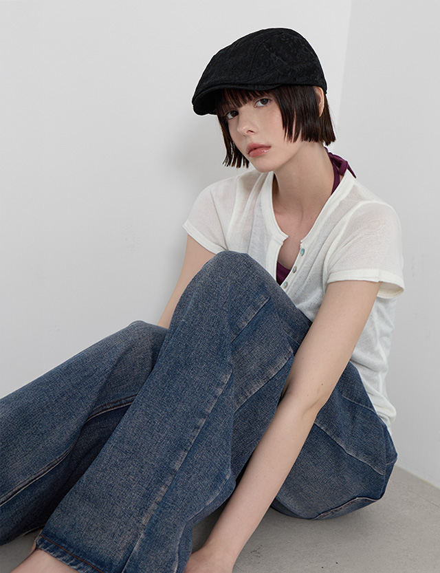 테뉴오 뒷밴딩 절개 デニム パンツ 87410