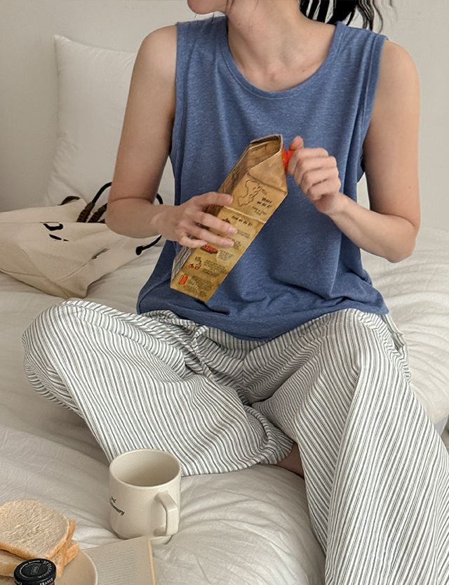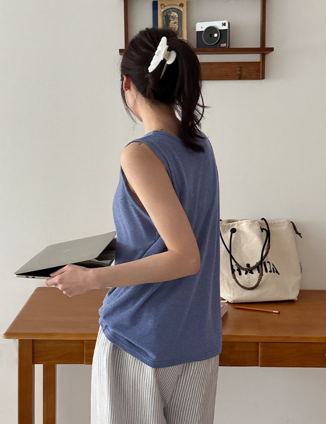 폴드엔 ベーシック リネン ラウンド 袖なし 87374