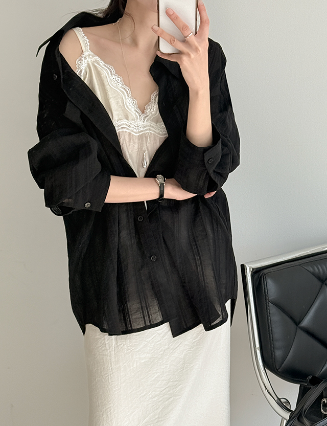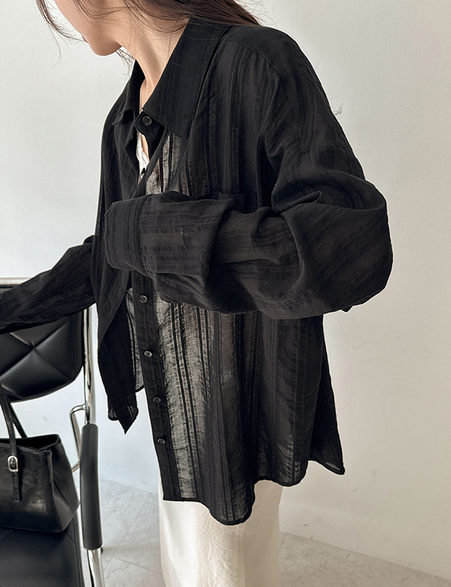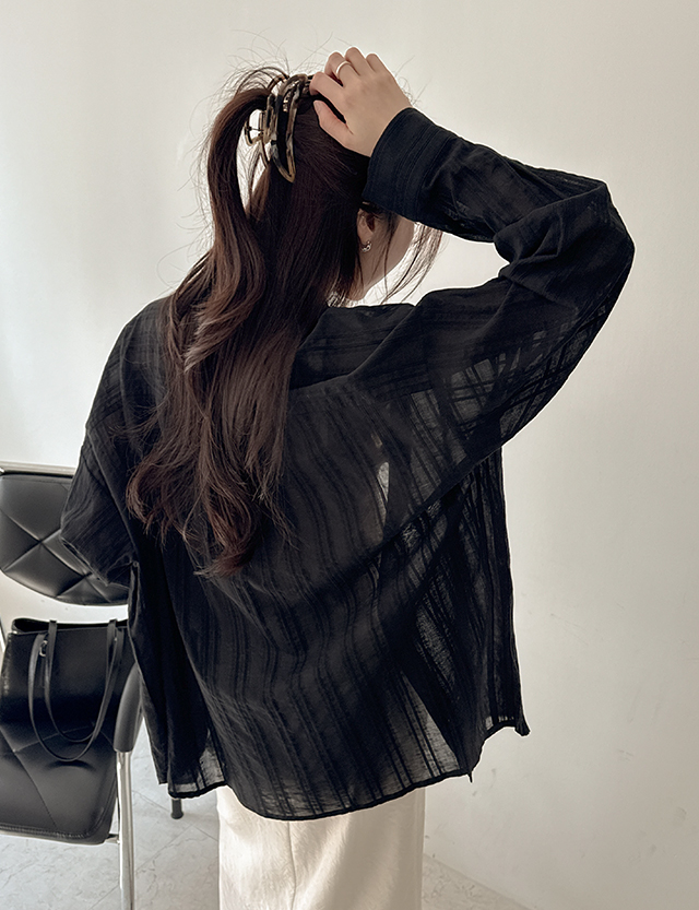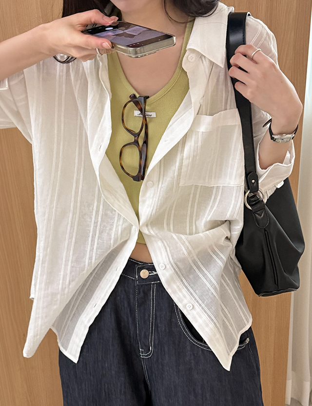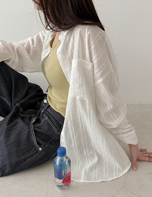[살안타템] 바람솔솔 ストライプ ルーズフィット シャツ 87458