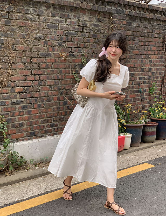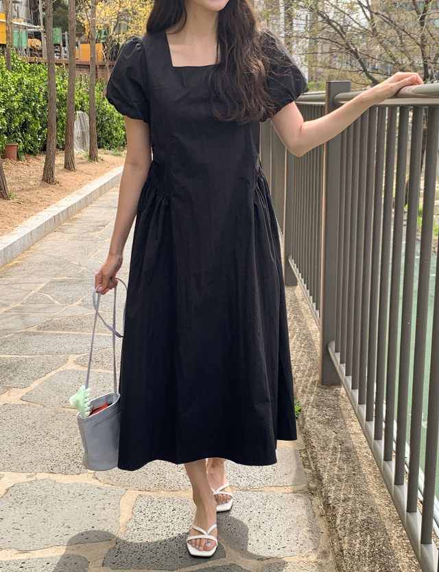 유잇니 스퀘어넥 셔링 ロング ワンピース 87393
