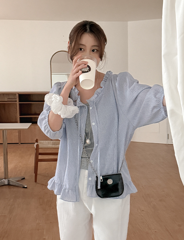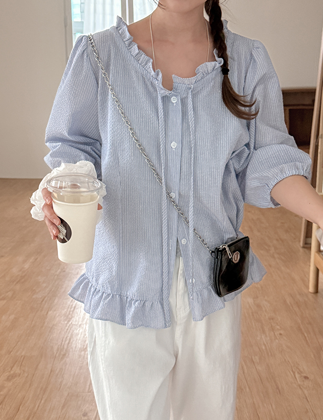 엘리엇 フリル 밴딩퍼프 リボン ブラウス 87451