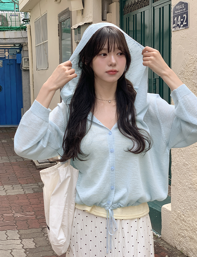 [09초이스] 햇빛을 가려줘 ルーズフィット フード ニット カーディガン 87373