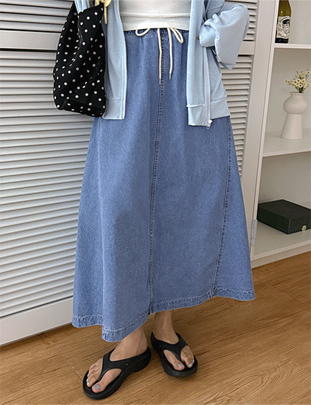 벨리브 ゴム フレア デニム ロング スカート 87524