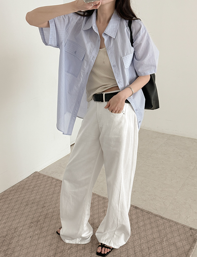 마이넬 ルーズフィット ストライプ シャツ 87518