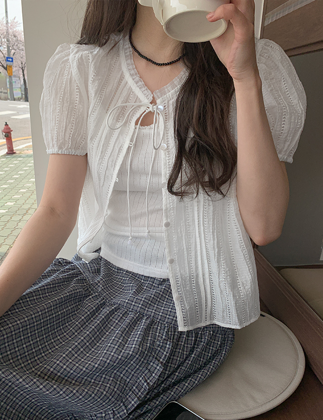 아스잉 シーツルー 셔링 カーディガン 87470